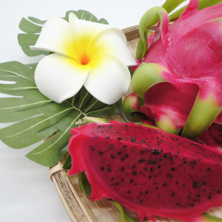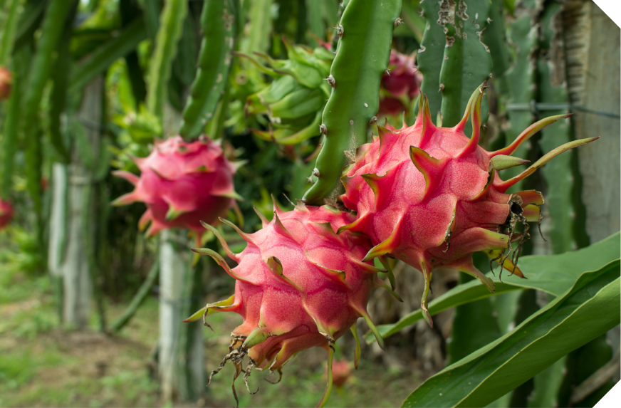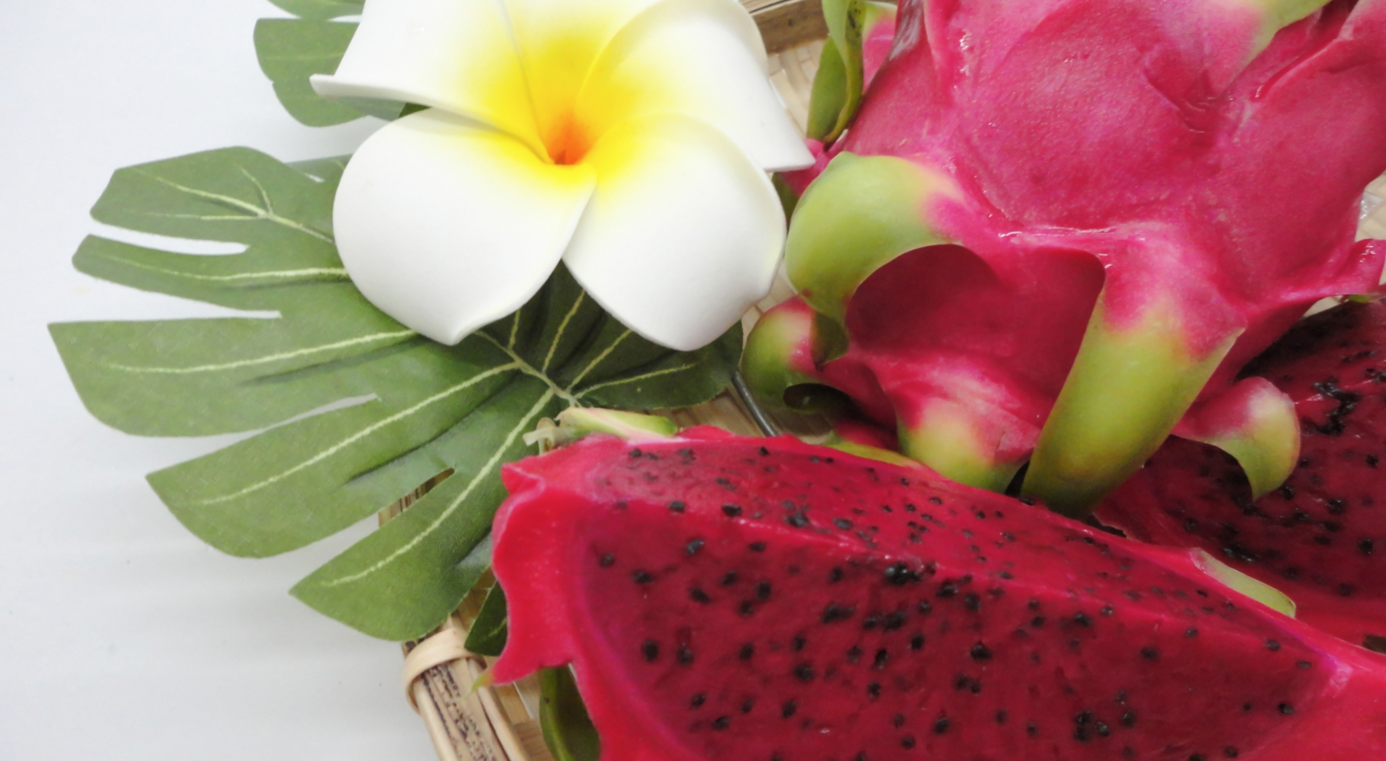 ドラゴンフルーツはサボテンに成る鮮やかなピンク色の果実です。